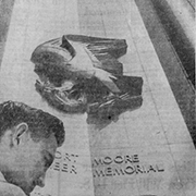 Albert Stewart (1900 – 1965) oversaw the design and fabrication of the terra-cotta memorial wall as well as designed the artwork for the pylon and flag pole area of the memorial. He was born in London and emigrated to the US as a child with his family. He studied at the Beaux Arts Institute and the Art Student’s League in New York City, and served as an assistant to sculptors Frederick MacMonnies and Paul Manship before he began sculpting in the 1930s. Stewart taught sculpture at Scripps College in Claremont for 25 years. Notable works include figures on the Scottish Rites Temple on Wilshire Boulevard and on the exterior of the Life Science Building at UCLA.