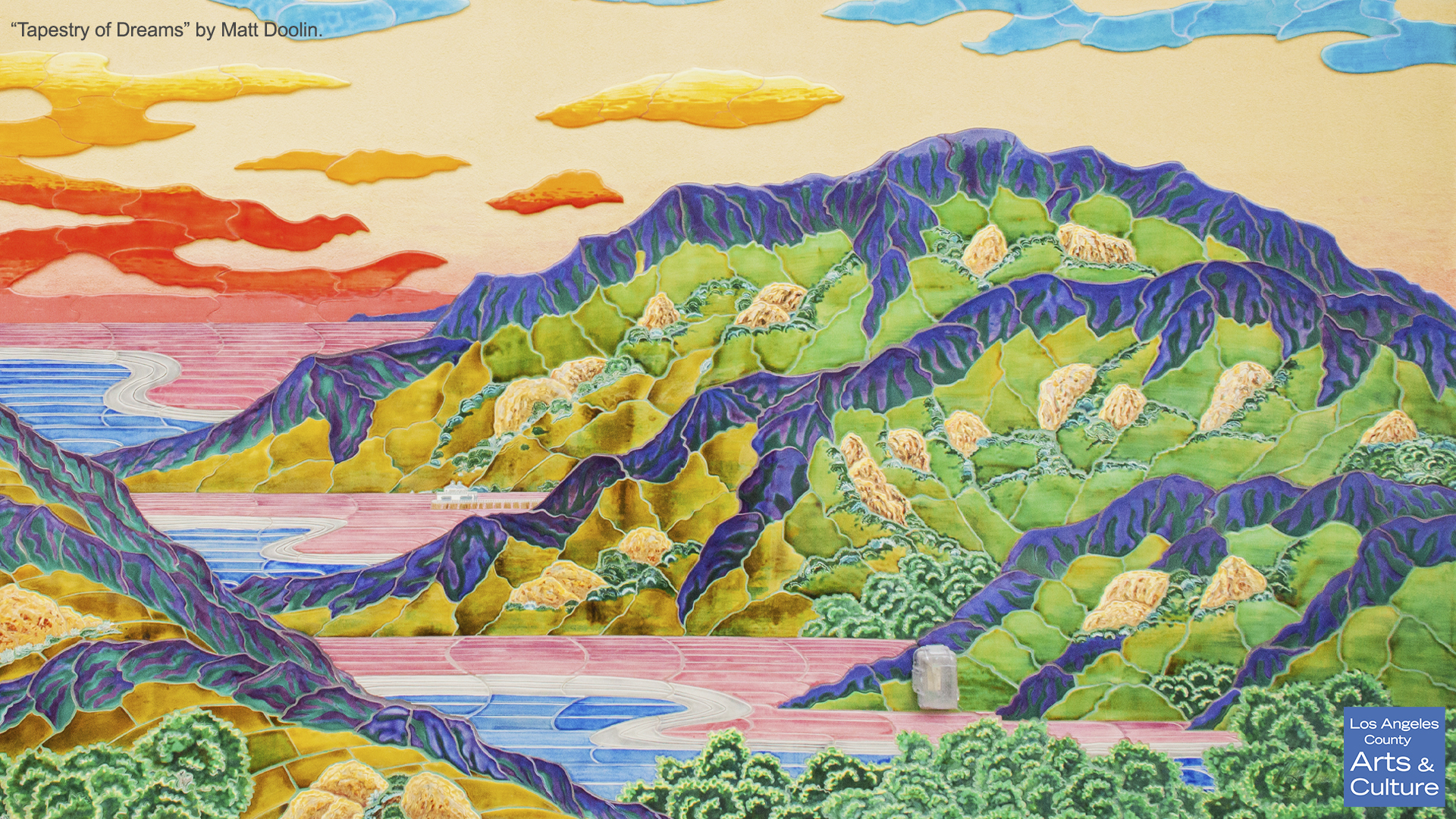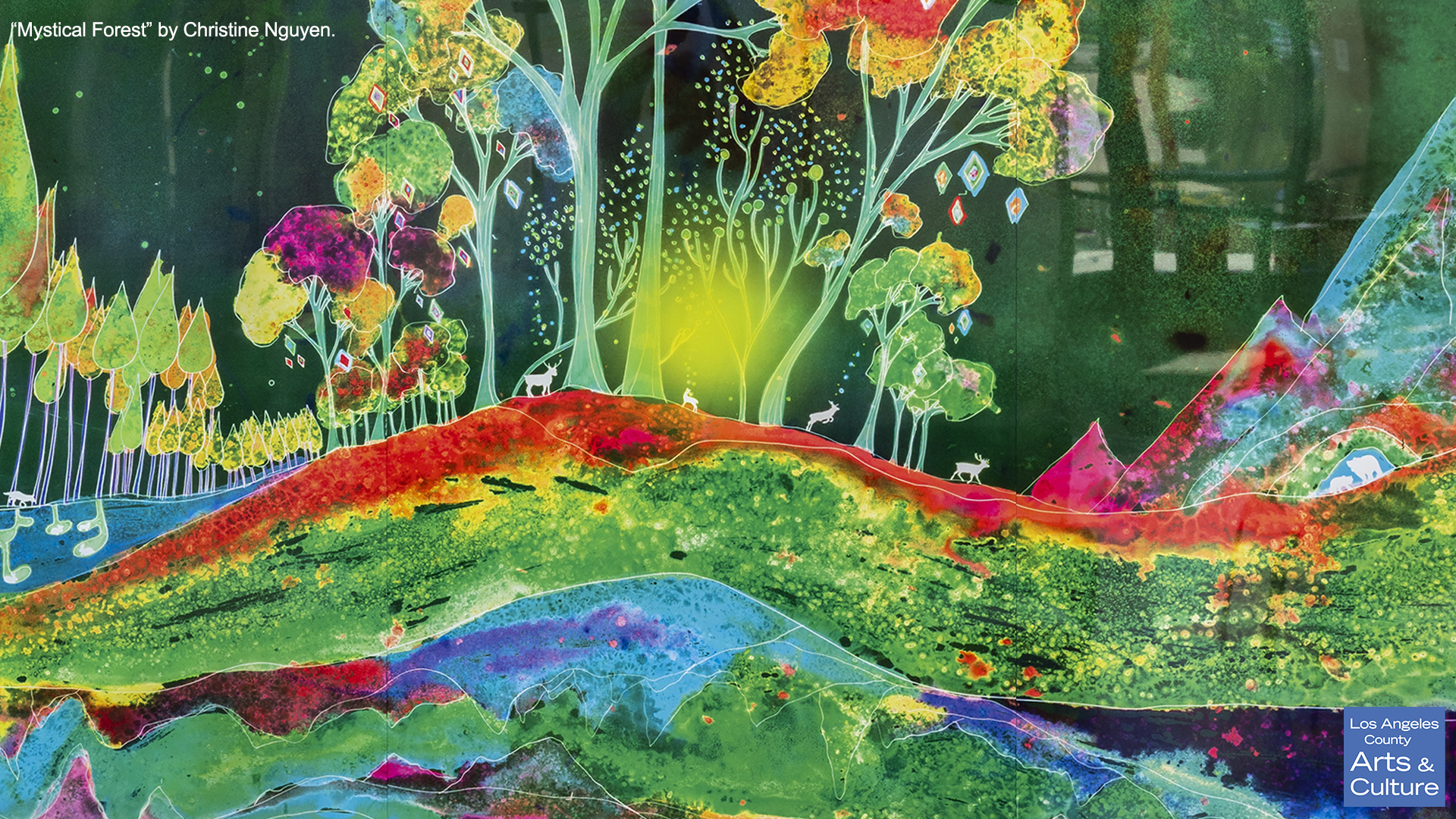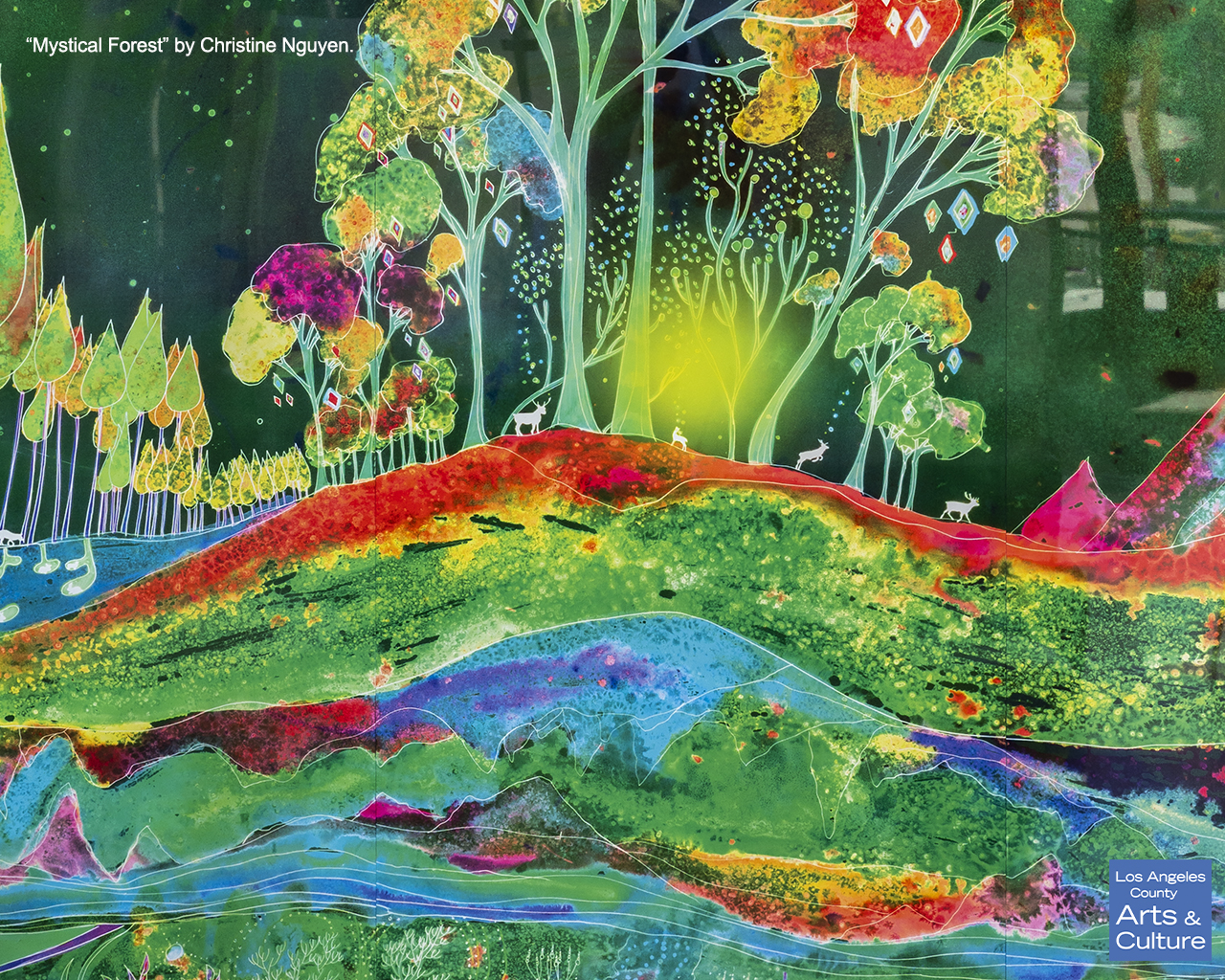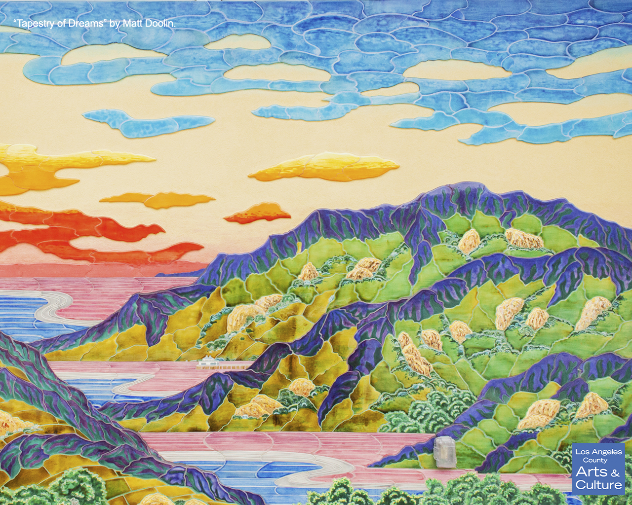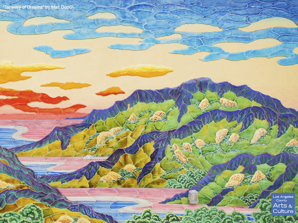 The Los Angeles County Civic Art Collection belongs to all residents and is comprised of historic and contemporary civic artworks by a diverse range of artists, with work located on County properties all across the region. The Collection is made up of artworks commissioned, donated, and purchased since the Civic Art Policy was adopted, as well as historic artworks created prior to the establishment of the Los Angeles County Arts Commission. For the first time ever, we have made a selection of these artworks available to download as either desktop wallpapers or video conference backgrounds (for programs such as Skype and Zoom).