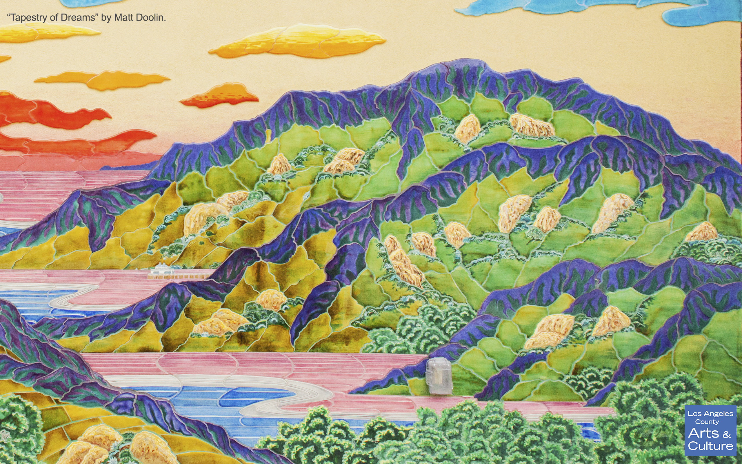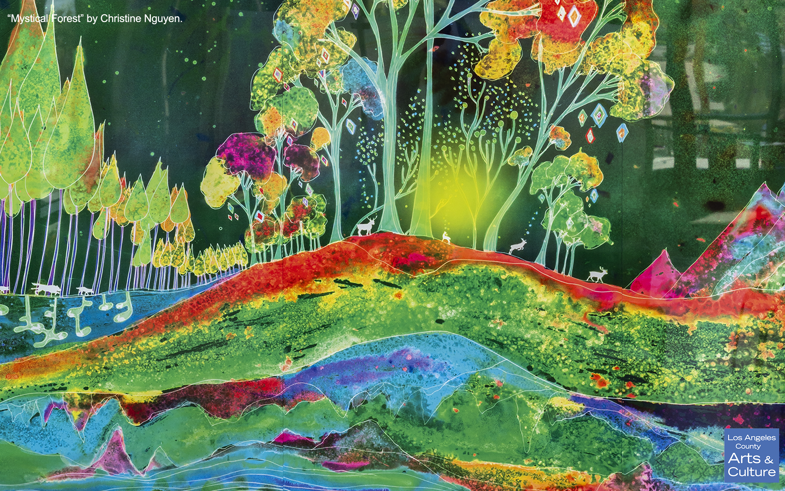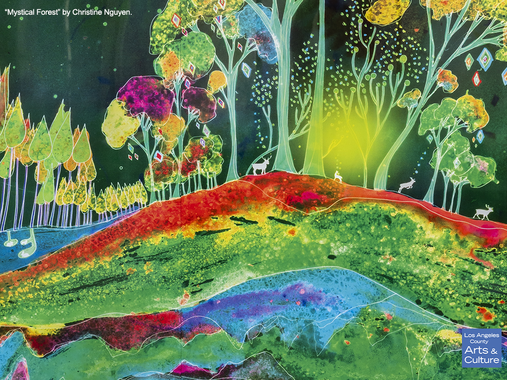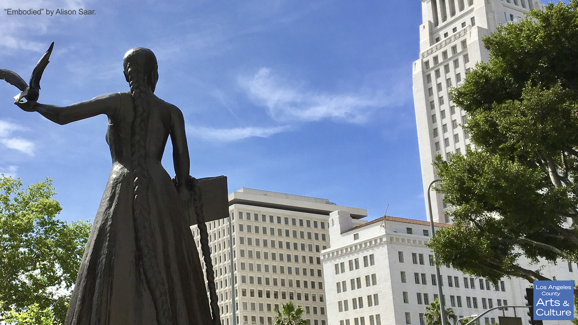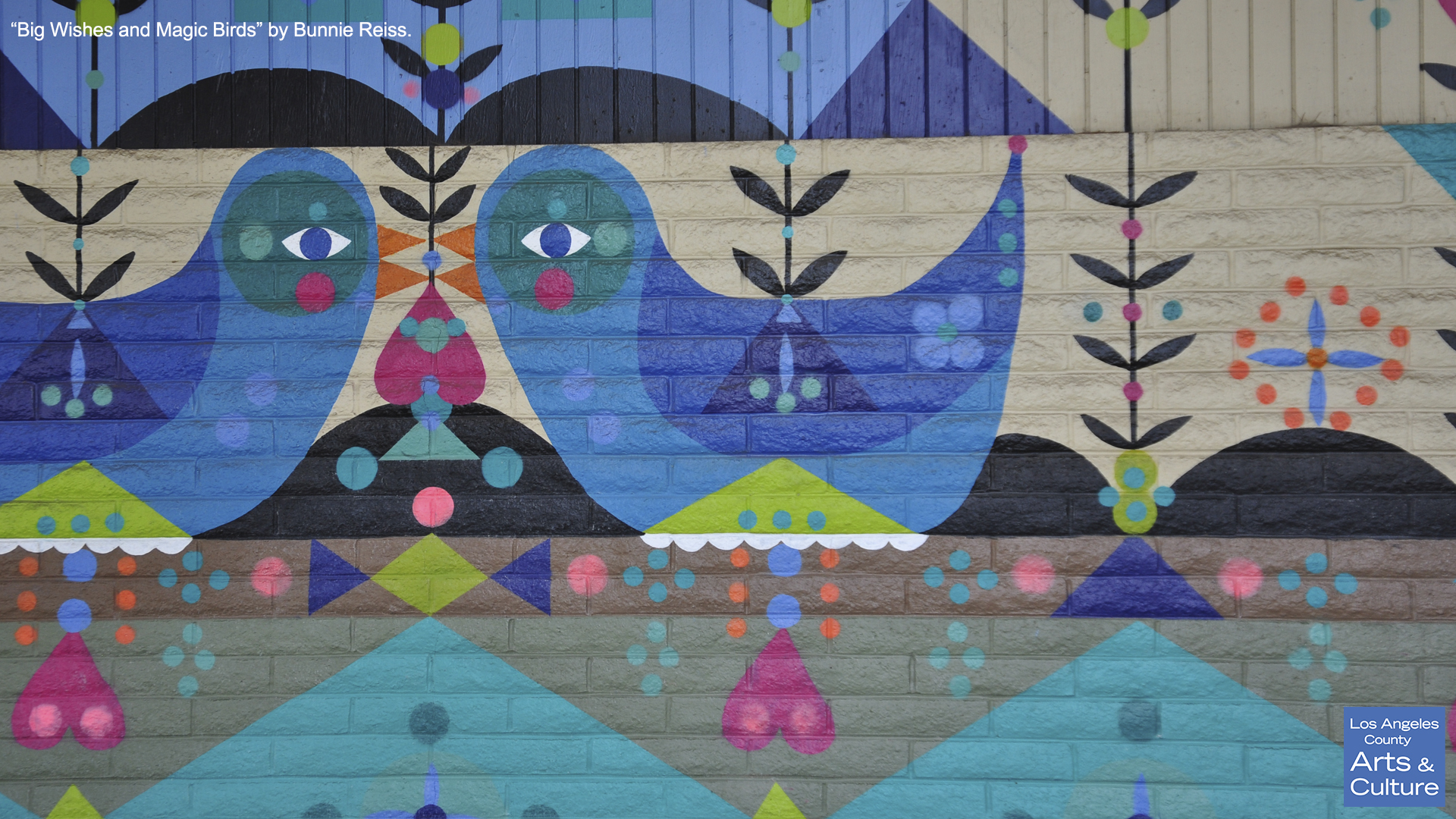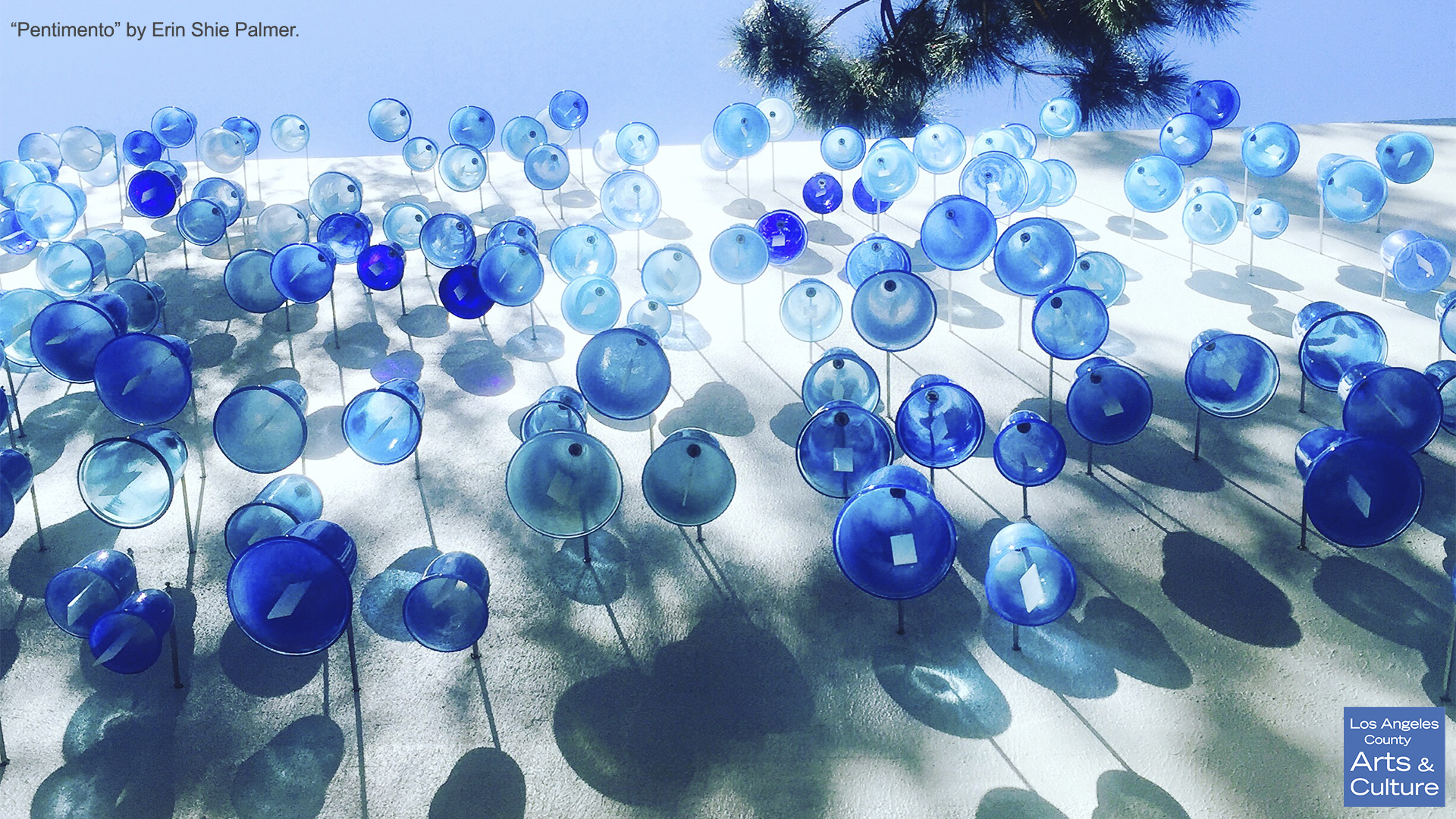 The Los Angeles County Civic Art Collection belongs to all residents and is comprised of historic and contemporary civic artworks by a diverse range of artists, with work located on County properties all across the region. The Collection is made up of artworks commissioned, donated, and purchased since the Civic Art Policy was adopted, as well as historic artworks created prior to the establishment of the Los Angeles County Arts Commission. For the first time ever, we have made a selection of these artworks available to download as either desktop wallpapers or video conference backgrounds (for programs such as Skype and Zoom).