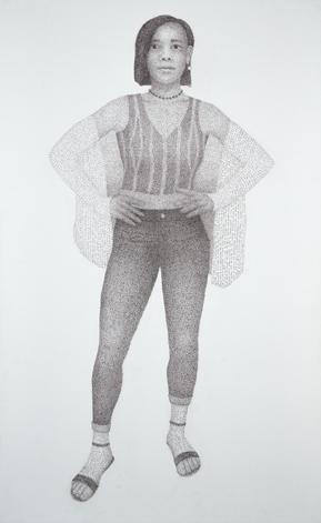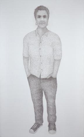 In the 1930’s, Justine’s great grandmother moved her family to the Watts neighborhood in South Los Angeles amid a backdrop of intense racial discrimination. I drew this portrait using the words of the housing covenants and deed restrictions that kept minorities from owning a home in areas of Los Angeles from the 1800s to 1948, when they were struck down in court. I use these words to form the image so that the words may be transformed from a document of hatred and fear into a new visual language of beauty and strength.