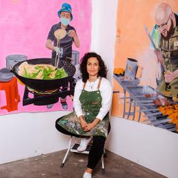 Hedy Torres is a Mexican-born artist based in Los Angeles, who immigrated to the United States in 2006. Her early experience working as a street vendor deeply shaped her practice, inspiring a focus on the stories of immigrants and street vendors whose labor and resilience often go unrecognized.