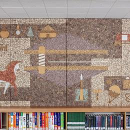 "I like having my art in a public space because you never know who you're going to help." —Dora De Larios On February 7 the Rowland Heights Library re-opened featuring a work from the county collection by the late artist Dora De Larios. The work is a plaster veneer bas relief which was originally created in 1978 when the library first opened.