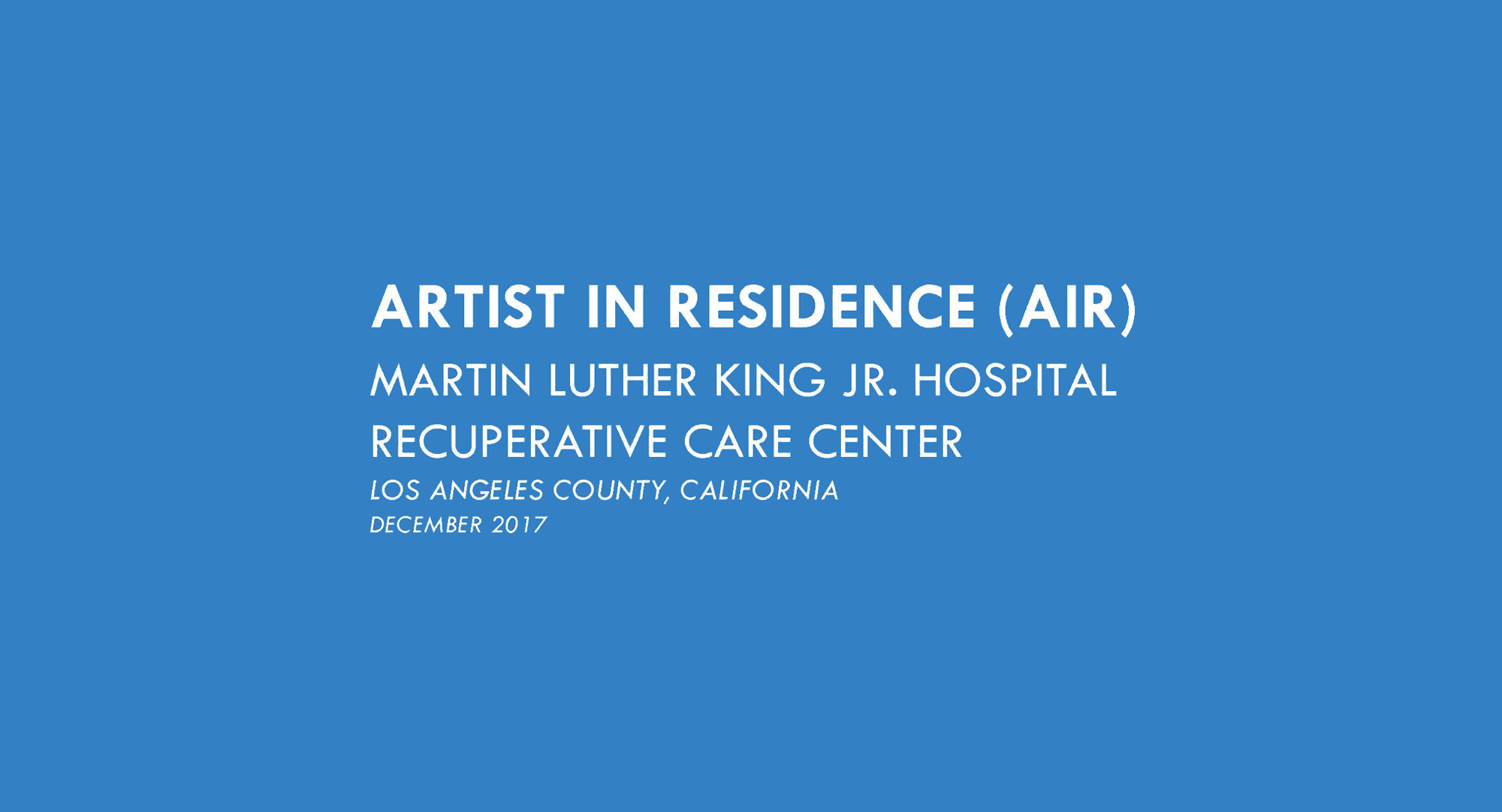 Artist Sandy Rodriguez was placed as an artist in residence at the Recuperative Care Center (RCC) at the Martin Luther King Medical Campus in Willowbrook, CA, in 2016-17. This residency was part of a $1.6 million investment in Civic Art funded through LA County's Percent for Art Policy. The Center provides interim housing to homeless patients who would otherwise remain in the hospital because they could not be discharged. Rodriguez was given the task of developing a “meaningful, sustainable program for the Recuperative Care Center that will engage staff and clients and create artwork to be displayed at the facility.”