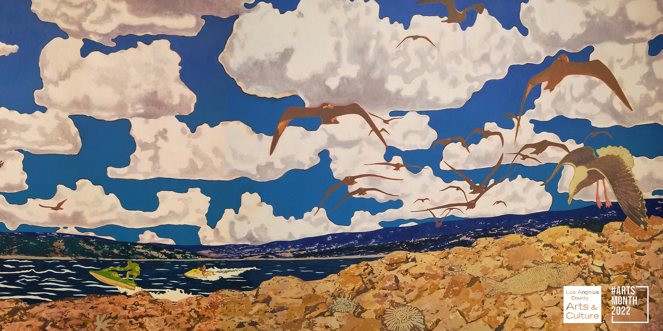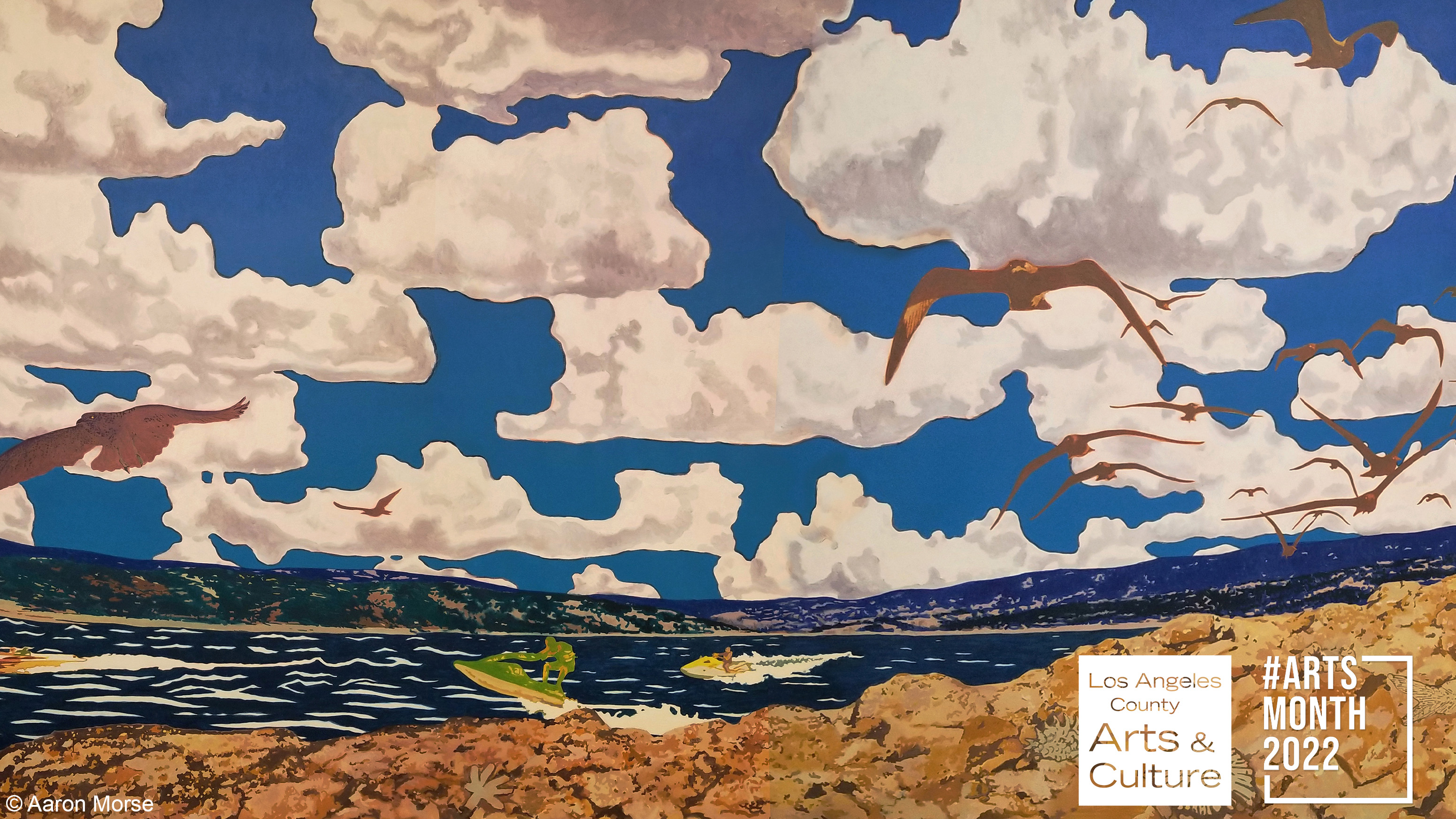 To celebrate Arts Month, we have made a few artworks available to download as desktop wallpapers or video conference backgrounds (for programs such as Skype and Zoom). The artworks on this page represent only a small portion of the full Los Angeles County Civic Art Collection. To learn more, click on the artwork you wish to read about or visit the County Collection to explore more art! We also encourage you to check out the great Arts Month resources from Arts for LA.