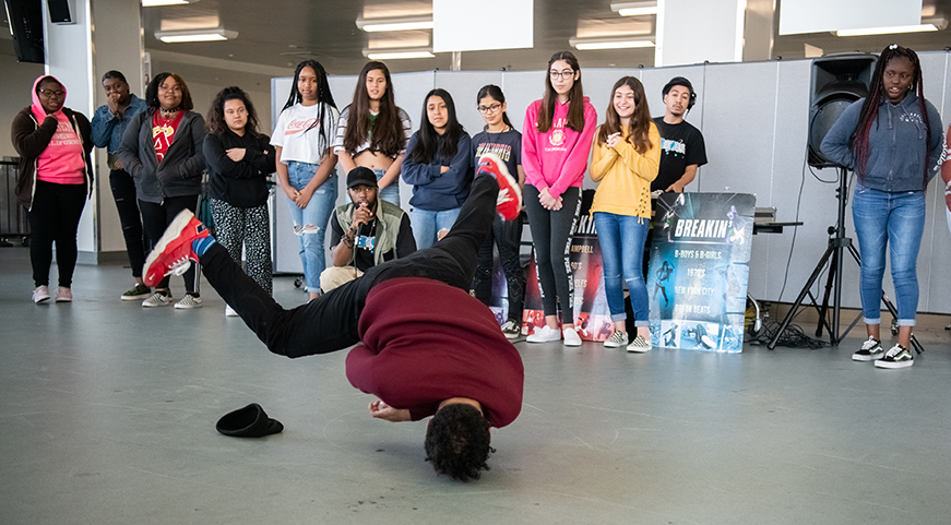 Students at Leuzinger High School take part in an arts engagement featuring UniverSOUL Hip Hop.