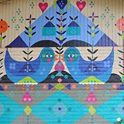 Bunnie Reiss was born in Maryland, but raised mostly with the wide-blue sky’s of Colorado. Her work is heavily influenced by her Eastern European background, with its tradition of folk art, bright colors, and community engagement. She has shown extensively in both the United States and around the world, in galleries, alternative spaces, bookstores, abandoned buildings, fields, forests, or any place that seems to need a little extra magic. Her brightly colored folk murals decorate many countries and can be found all over the world. Los Angeles, Mexico, Italy, Paris, India, Philippines, Detroit, Milwaukee, New York, and San Francisco are just a few places you would likely stumble upon one.