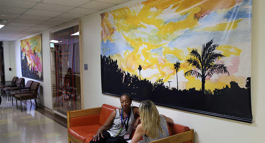 For phase one, Rodriguez worked with the Department of Health Services to develop and implement an art program that helped support patients’ transition into housing from the hospital. In phase two, she developed a program for clients at the MLK RCC to create artworks to adorn the walls of the MLK RCC. As part of this phase, staff also participated with the goal of learning techniques that they can then integrate into future in-house developed programs.