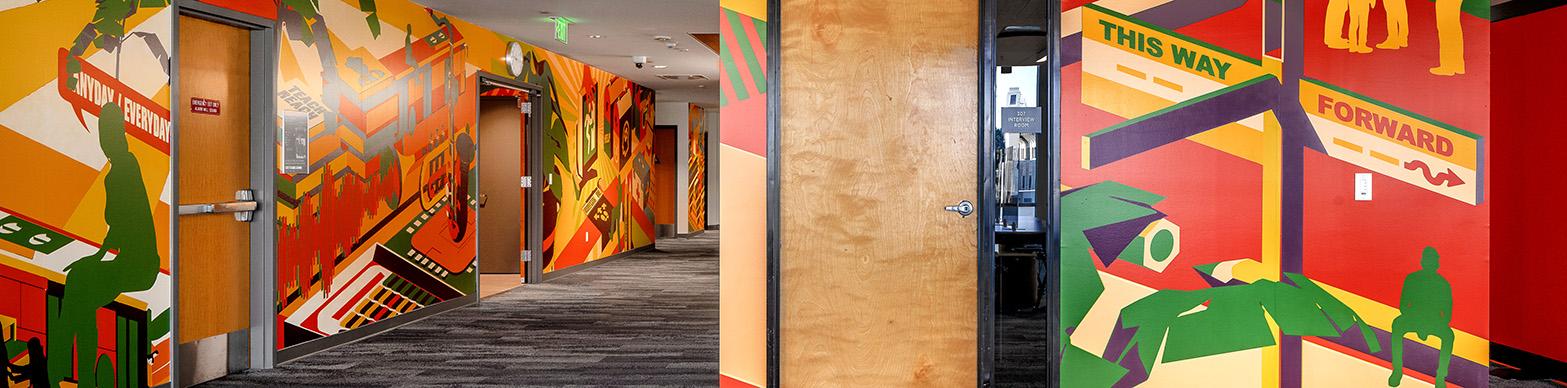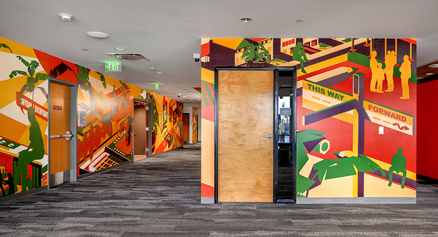 "Murals by Olalekan Jeyifous, at the Community Reentry Center: Developing Opportunities and Offering Reentry Solutions (D.O.O.R.S).