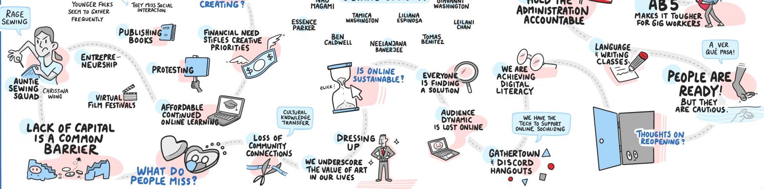 In order to deepen our understanding of LA County residents’ needs and experiences of arts and culture during the pandemic, a qualitative study component was added. Ten grantee representatives conducted in-depth interviews with audience members, students, artists and staff. In the interviews, they asked about current arts and culture experiences and activities, online engagement with arts and culture, and recommendations for local arts and culture organizations.