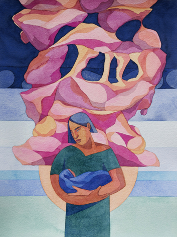 This painting celebrates the strength, depth, and beauty of motherhood. It honors that person, whoever they may be to us, who is like a granite stronghold in our lives, guiding us from infancy, through hardships, joy, and beyond.