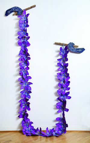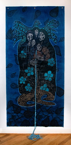 This piece represents the connection between the women of Los Angeles and Oaxaca. I began a collective of Los Angeles women across culture, faith, and life experiences to build bridges with women artists in Oaxaca –which inspired a female artist residency Oaxaca. While there, I saw the beautiful Pochote tree with its glorious flowers. Upon my return, I discovered another at the entrance to Laurel Canyon–my home! In my artwork, the braided rope symbolizes strength and the two hands holding the rope represent the connection between the women.