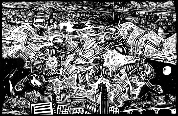 Tumbling somewhere between a small town in México and the City of Los Angeles, are the skeletons of those who traverse borders. During the Día de Los Muertos, the dead are said to be allowed to cross the divide between the living and the dead to join their loved ones in celebration. How then will such a scenario play out for the millions of people that have loved ones on both sides?