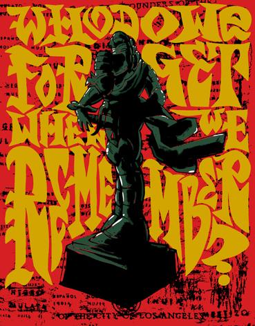 Part of a series of works exploring the history of Los Angeles’ founding using the monuments and markers at Plaza Olvera as text. This ongoing series is framed by the question, “Who do We Forget When We Remember?” and invites us to unpack how Western culture tracks time, when it chooses to start tracking time, who it chooses to include/exclude in its mythmaking, and the limitations of the language used to describe the people and events in those histories.