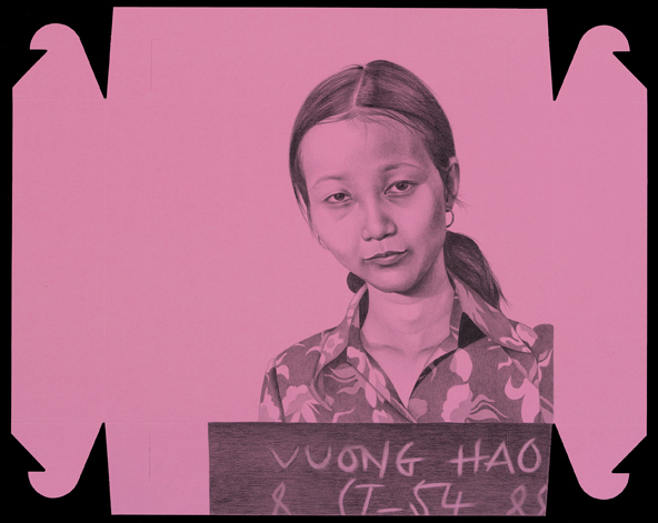 Hao Huynh (Mom), 2019, Graphite on pink donut box