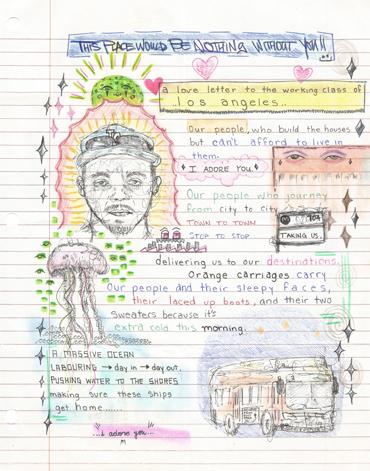 A Love Letter to the Working Class of Los Angeles, 2022, Color pencil, ink and pastel on paper