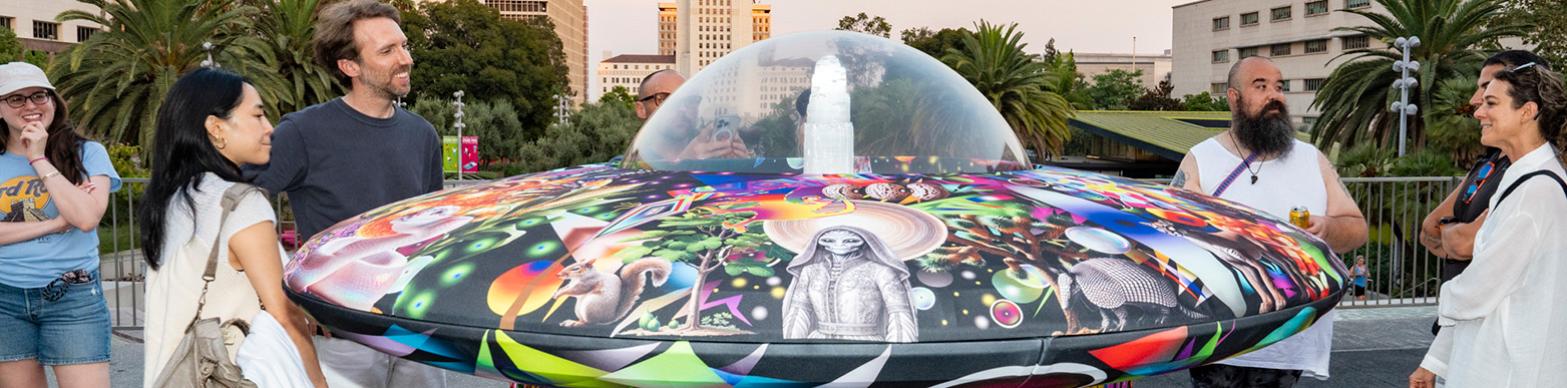 Humans have a deep desire to preserve culture for future generations. Vessel invites viewers to reflect on UAPs (unidentified anomalous phenomena) as modern symbols that speak to our collective hope for survival and the power of art and storytelling to transcend time and space. Situated at the site of the Indigenous village of Yaangna in Gloria Molina Grand Park, this piece honors the diverse communities of Los Angeles, connecting past and present.