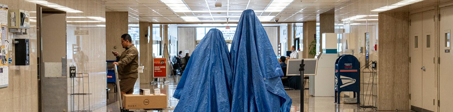Housing, Blue Tarp, Sculpture, 2024